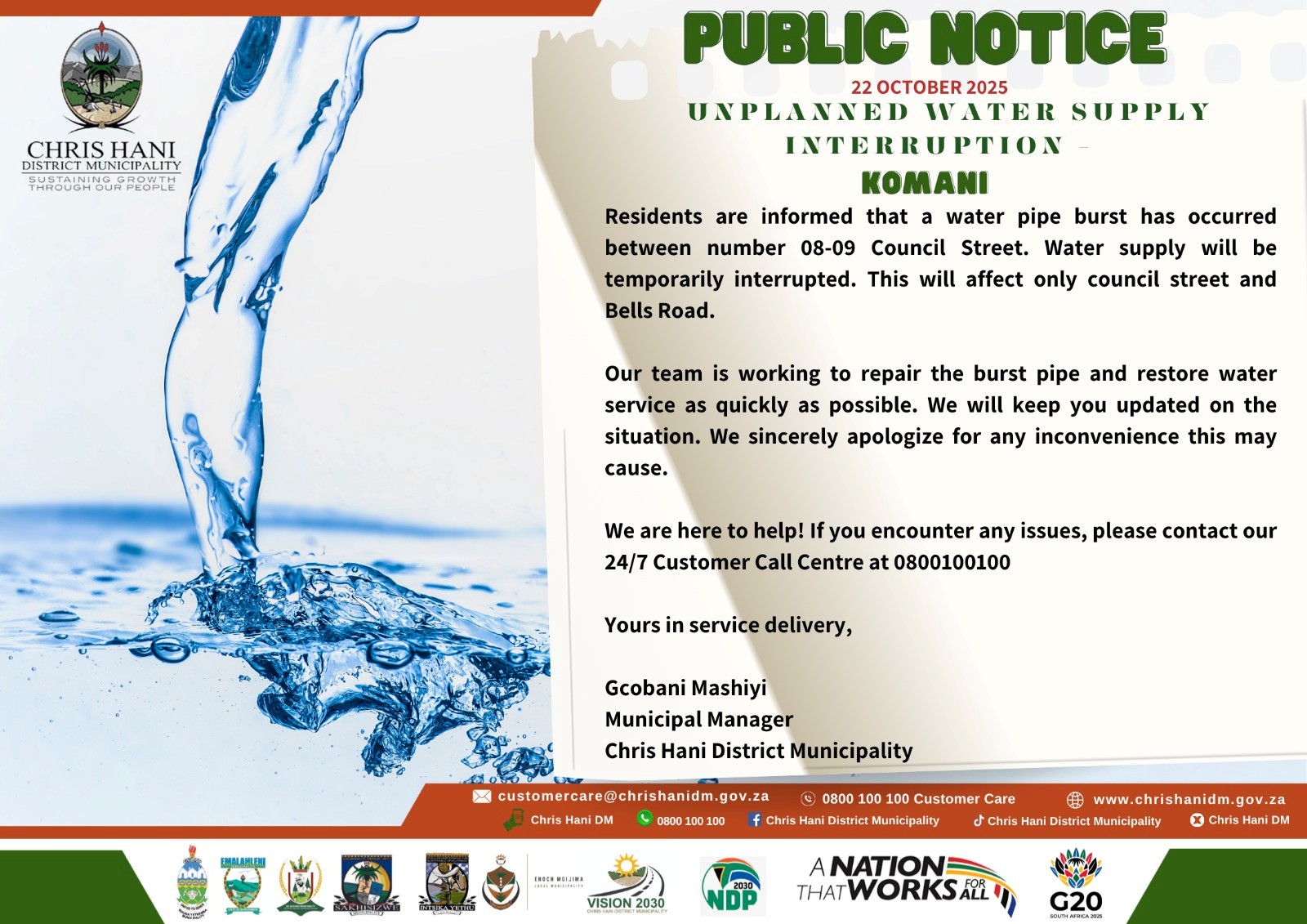 UNPLANNED WATER SUPPLY INTERRUPTION – KOMANI