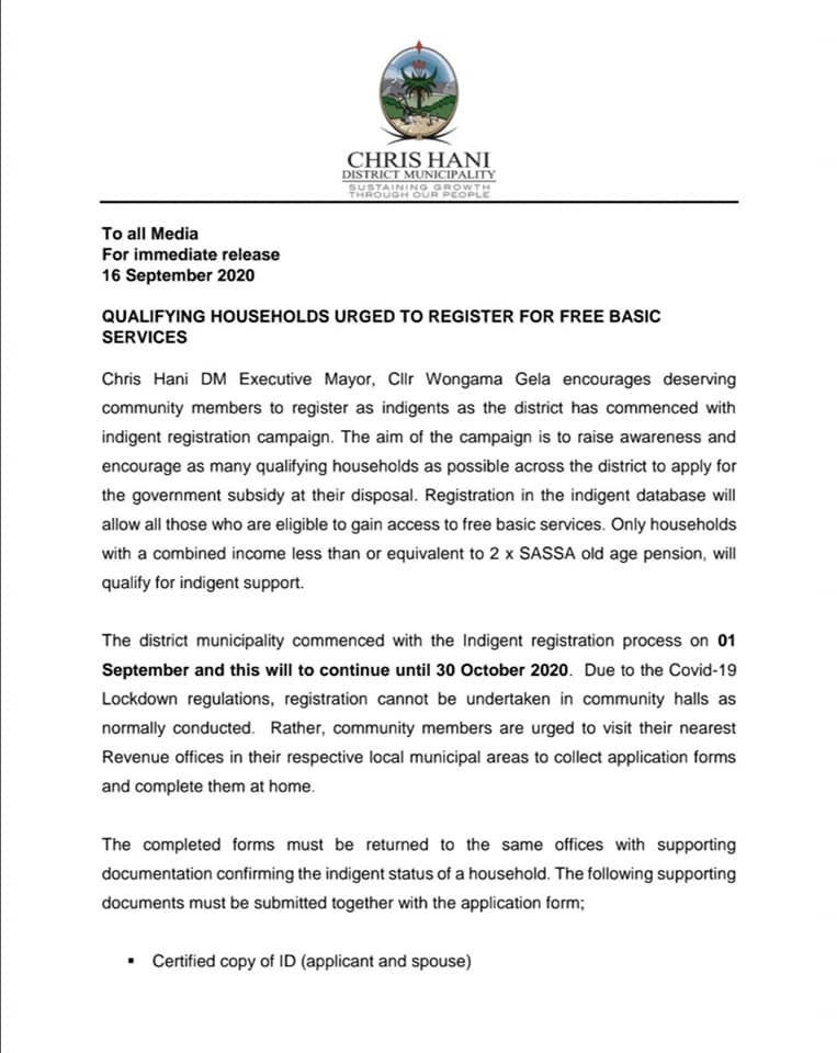 While we are in constant communication with Enoch Mgijima Local Municipality, we will in the meantime, run around the clock to ensure uninterrupted water service provision throughout the period. CHDM is utilizing its backup generators to ensure water service provision that is continuous. We however would like to caution customers that water pressure may be impacted though no water outage is anticipated.