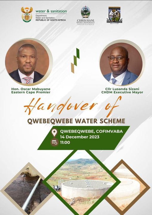 CHDM Executive Mayor, Cllr Lusanda Sizani and EC Premier, Oscar Mabuyane will handover Cluster 8 Qwebeqwebe Water Scheme in Cofimvaba, Intsika Yethu Local Municipality.