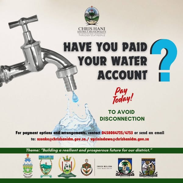To receive your account timeously, please forward your email address to accountsenquiries@chrishanidm.gov.za