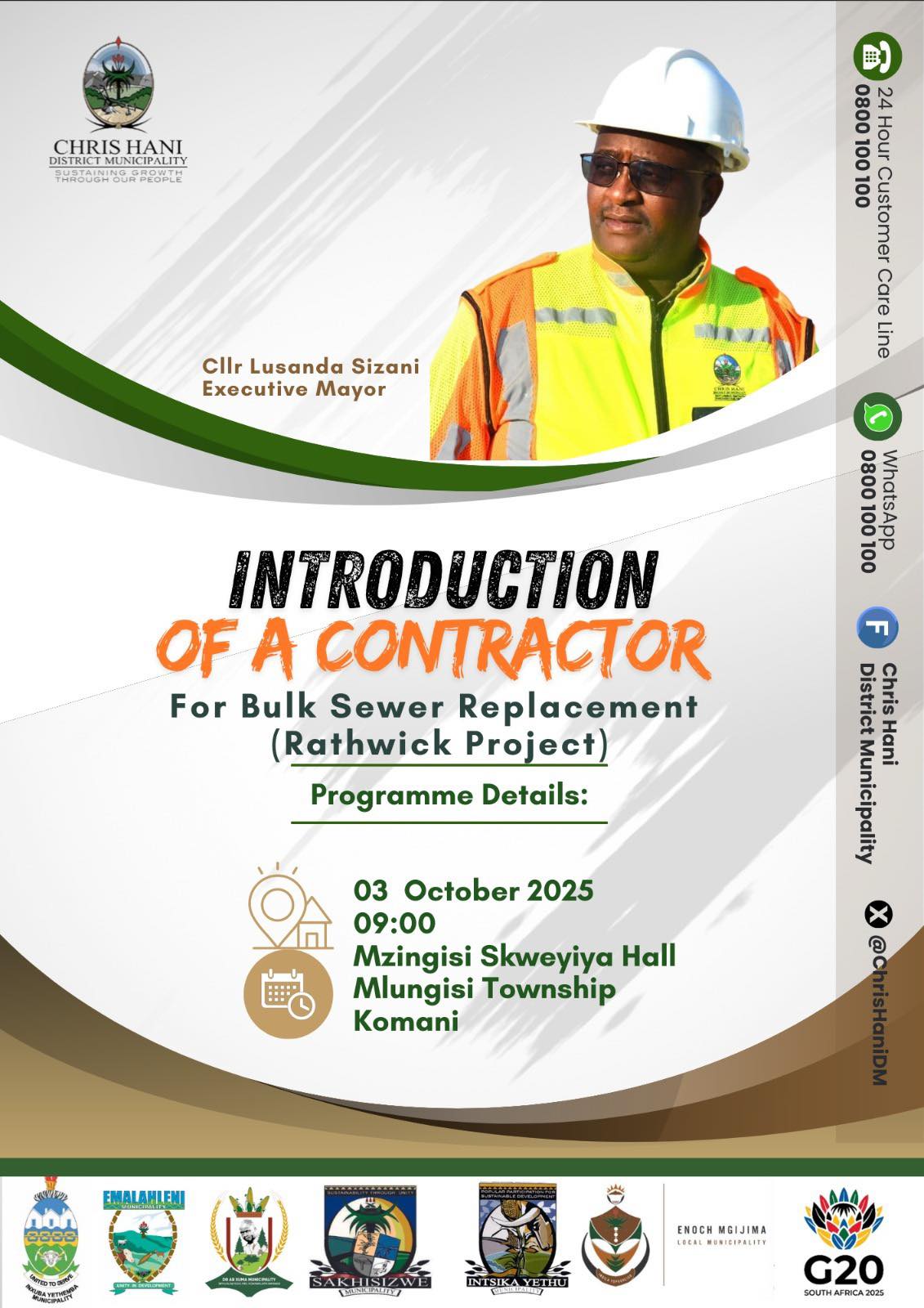 The Executive Mayor will be introducing the contractor that will be working at Abbator and Derby Street for Bulk Sewer Replacement.